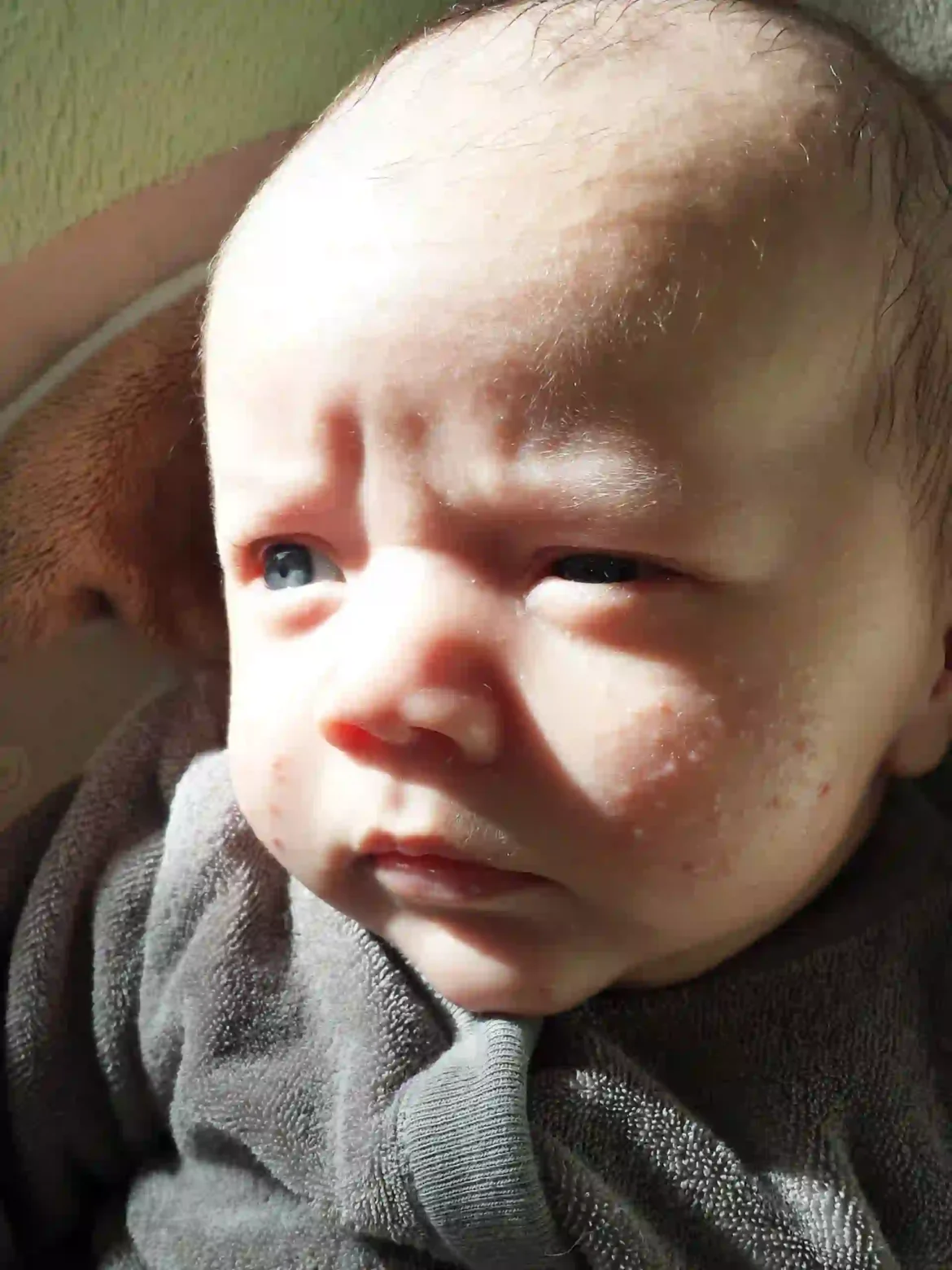 Aquí una foto de mi bebé con acne: Matthew 2 meses de edad